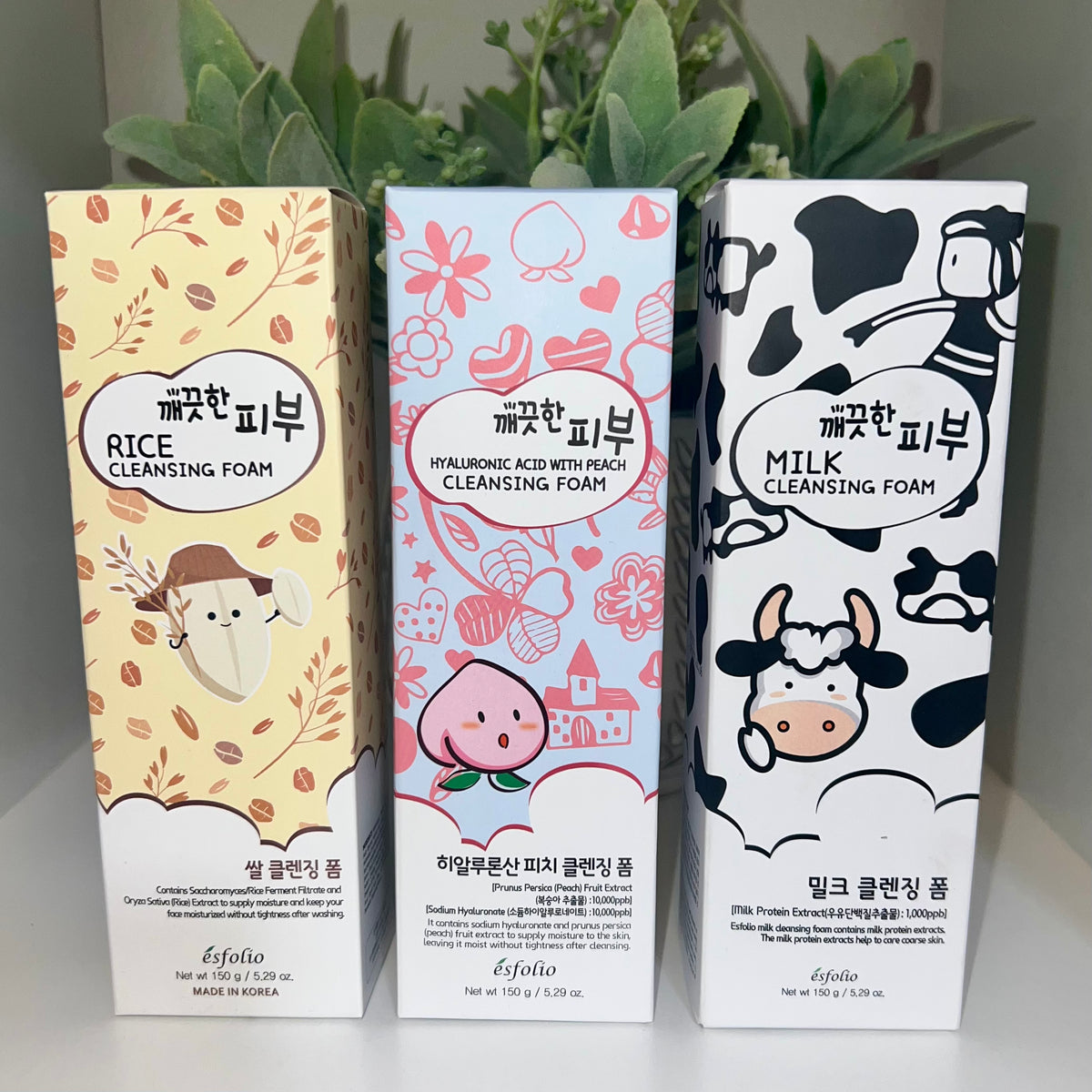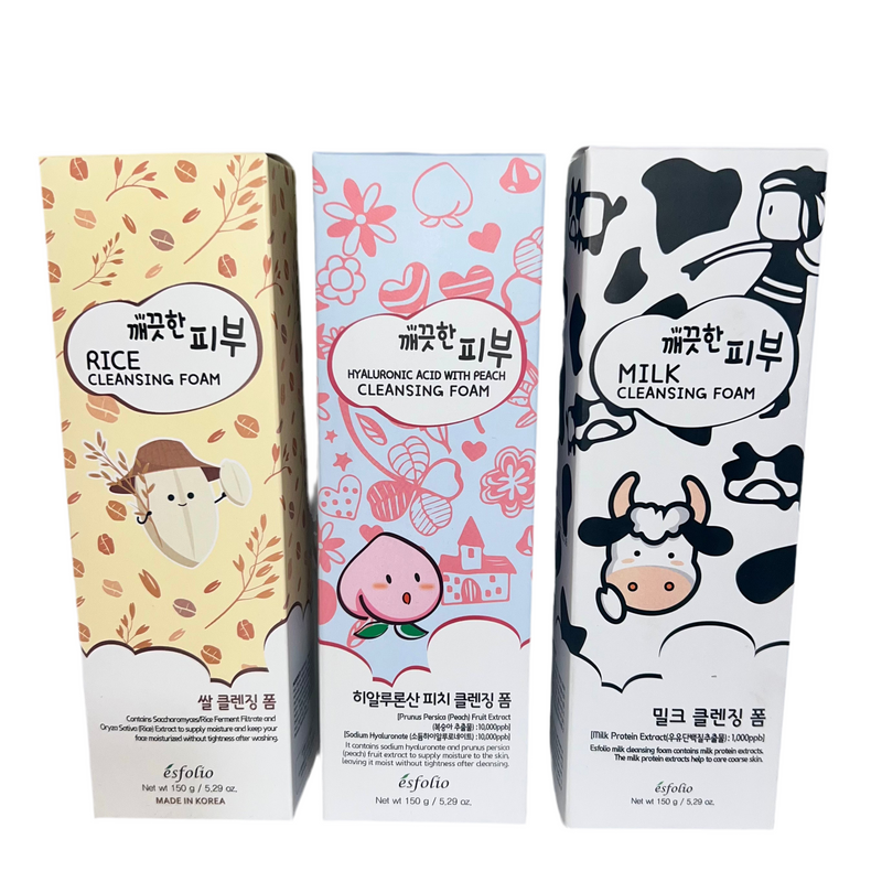 Esfolio - Cleansing Foam 3 Pack Rice, Hyaluronic Acid With Peach and Milk